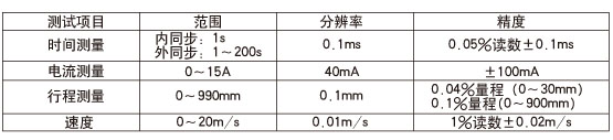 ◇ 工作电源:220V具备交直流两用; ◇ 采样频率:10kHz; ◇ 计算机通讯接口:RS232接口; ◇ 主接点时间测量:0~200ms,不少于12路; ◇ 电阻接点时间测量:300Ω~5KΩ,不少于3路; ◇ 电源(20V~270V)可调,瞬间电源15A;(根据客户要求可配置20A电流输出电源)